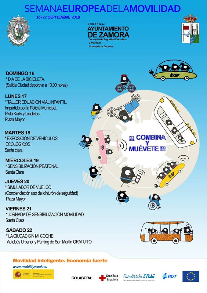 El Domingo 16 de Septiembre se iniciarán las actividades con la celebración del “Día de la Bicicleta”, el Lunes 17 “Taller de Educación Vial Infantil” con pista de karts y bicicletas en la Plaza Mayor, e Martes 18 Exposición de Vehículos Ecológicos en Santa Clara, el Miércoles 19 “Campaña de sensibilización de seguridad peatonal” también en Santa Clara, el Jueves 20 Simulador de Vuelco para concienciación del uso cinturón de seguridad en la Plaza Mayor, el Viernes 21 “Jornada de Sensibilización sobre Movilidad” en Santa Clara y el Sábado 22 “La Ciudad sin mi coche con autobús urbano gratuito”.