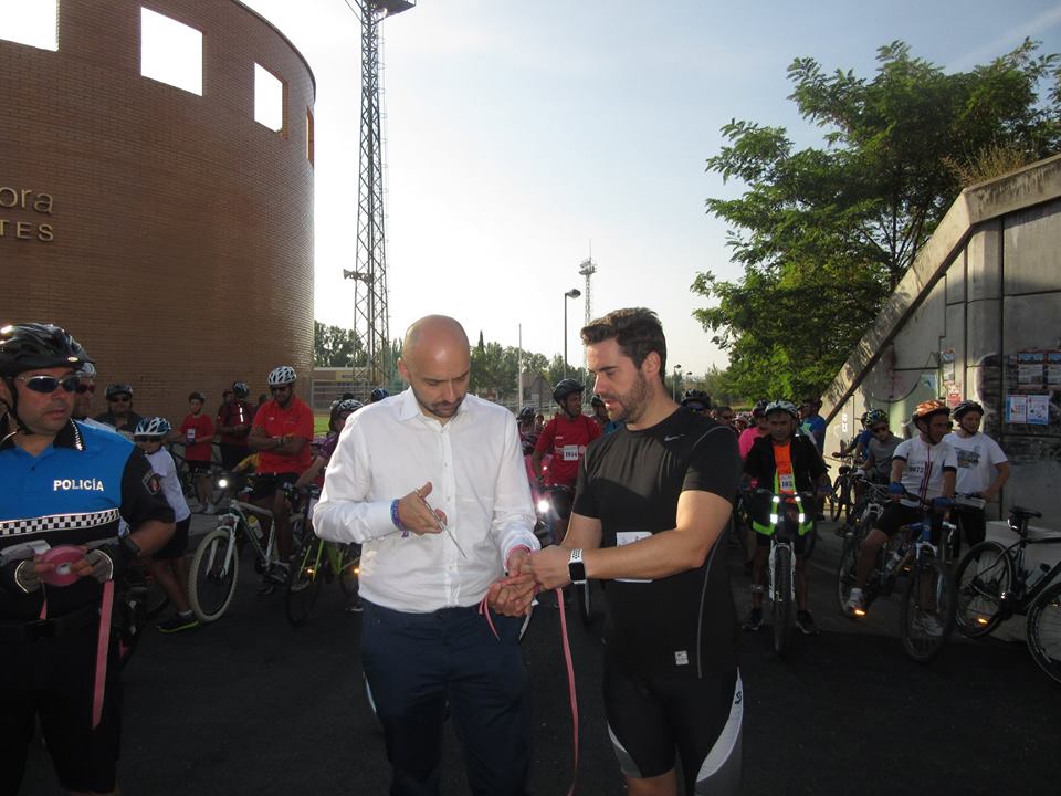 El 1er Teniente de Alcalde y Concejal de Seguridad Ciudadana y Movilidad Antidio Fagúndez y el Concejal de Deportes Manuel Alonso en la salida de la ruta cicloturista por la ciudad desde la Ciudad Deportiva Municipal