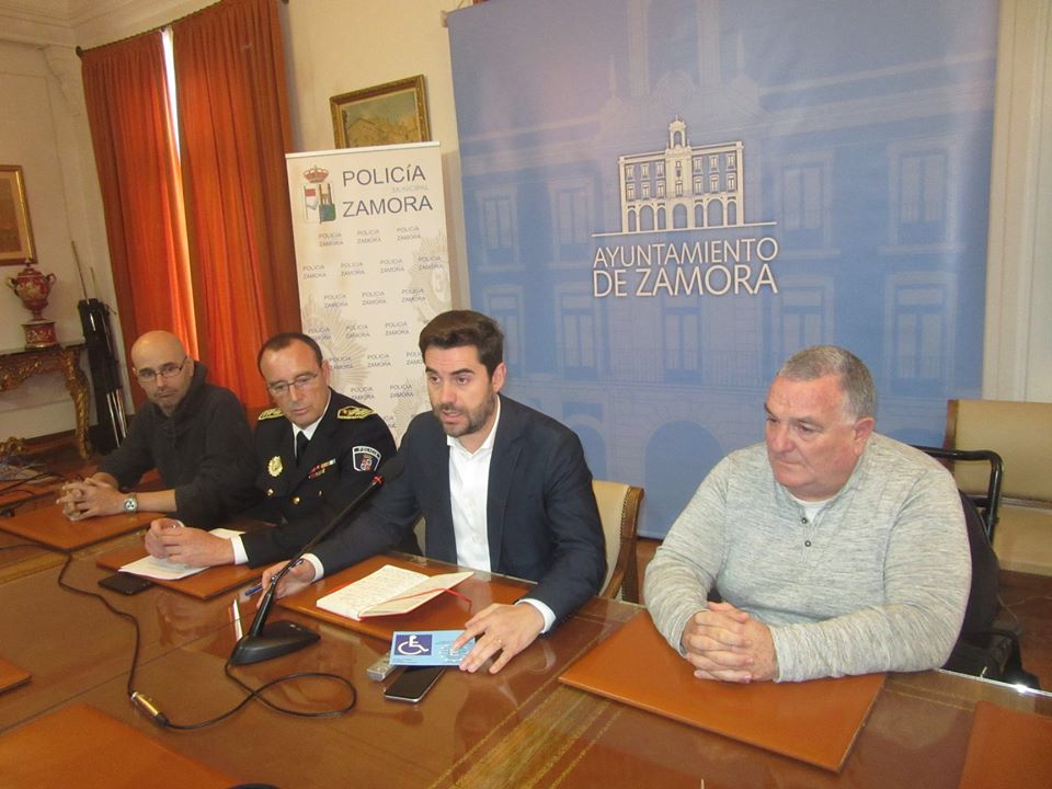 Coincidiendo con la conmemoración anual del Día Internacional de la Discapacidad el 3 de Diciembre, el 1er Teniente Alcalde y Concejal de Seguridad Ciudadana y Movilidad del Ayuntamiento de Zamora Antidio Fagúndez y el Jefe de la Policía Municipal Tomás Antón han comparecido hoy Viernes en Rueda de Prensa con los representantes del Colectivo de Personas con Discapacidad José Luis Calvo, Jesús Ámez y Mª del Pilar Campos con el fin de abordar, entre otras cuestiones, la utilización irregular de las Tarjetas con fines de aparcamiento y estacionamiento en plazas reservadas y zona ORA por personas que no son las titulares de la tarjeta y no tienen declarada ningún tipo de discapacidad, principalmente familiares y allegados que las utilizan para fines particulares en ausencia de la persona titular de la tarjeta de discapacidad.