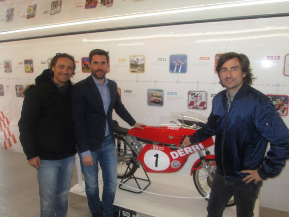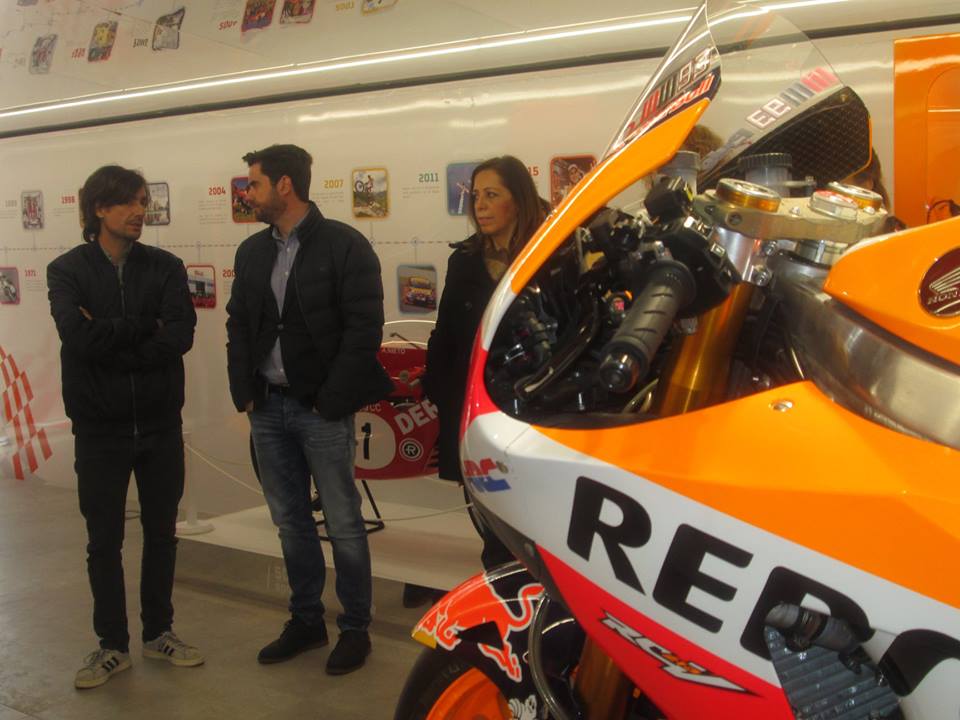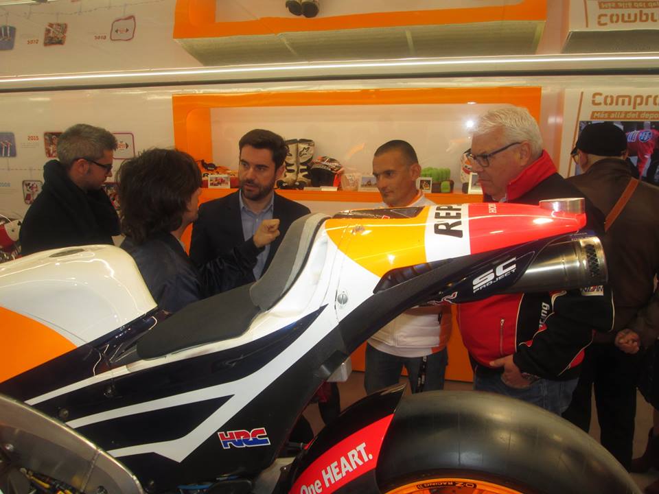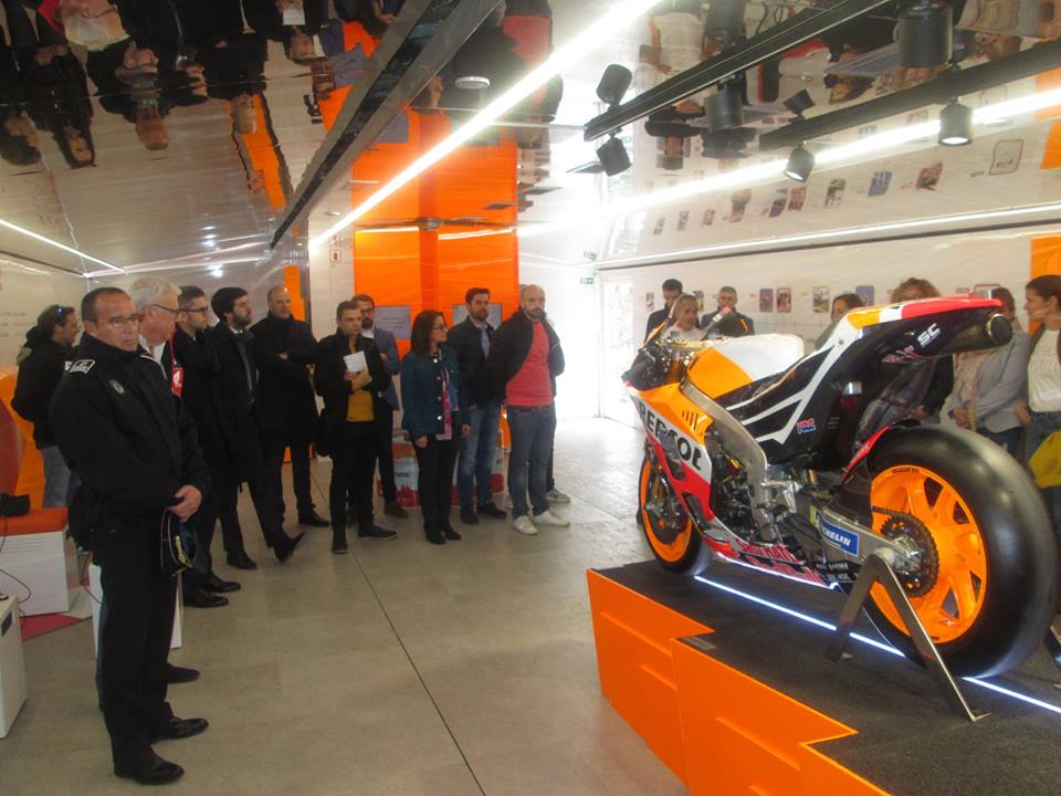 El 1er Teniente Alcalde del Ayuntamiento de Zamora visita la plataforma expositiva acompañado de Ángel y Pablo Nieto, hijos del mítico 13 veces Campeón del Mundo de Motociclismo, el zamorano Ángel Nieto, el Jefe de la Policía Municipal Tomás Antón, el Presidente de la Asociación Motera de Zamora Enrique González y los directivos de Repsol responsables del evento