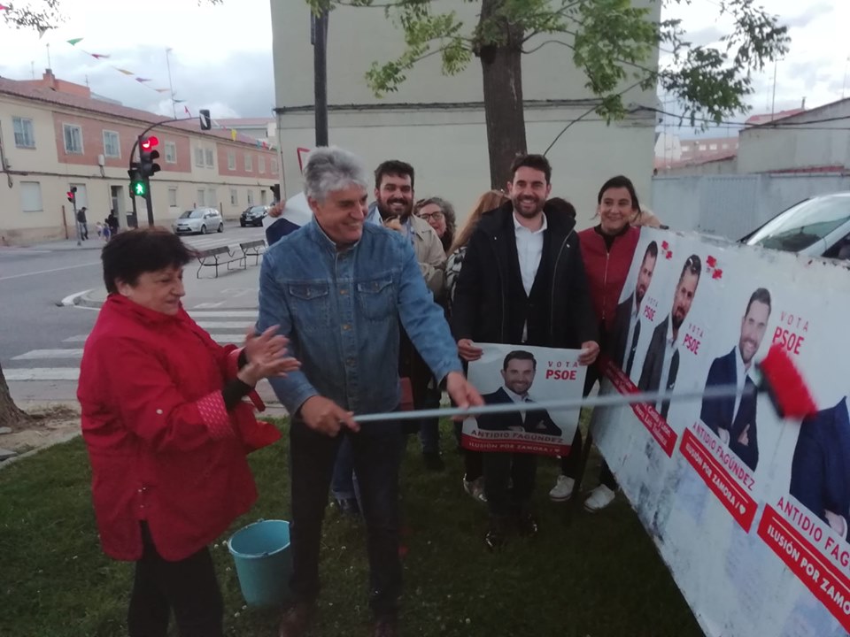 Pegada de carteles en San José Obrero hoy Viernes 10 de Mayo con la presencia de Secretario General y Candidato a la Alcaldía Antidio Fagúndez, de los Candidatos a las Cortes Ana Sánchez, Inmaculada García Rioja y Carlos Fernández y de los integrantes de la Candidatura socialista al Ayuntamiento de Zamora