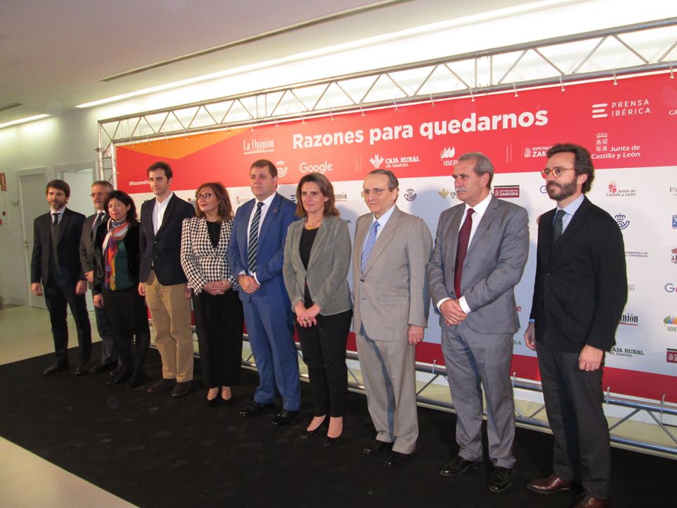 Previo a la intervención de la Vicepresidenta y Ministra de Transición Ecológica y Reto Demográfico han intervenido en la mesa “Una política europea. Una estrategia de Estado. Una alianza frente al reto demográfico” la Directora de la Opinión de Zamora, Marisol López, el Presidente del Grupo Prensa Ibérica-Grupo Zeta, Javier Moll, el Director General de Caja Rural, Cipriano García, el mánager institucional de Google España y Portugal, Antonio Vargas, y el Presidente de Correos Juan Manuel Serrano.