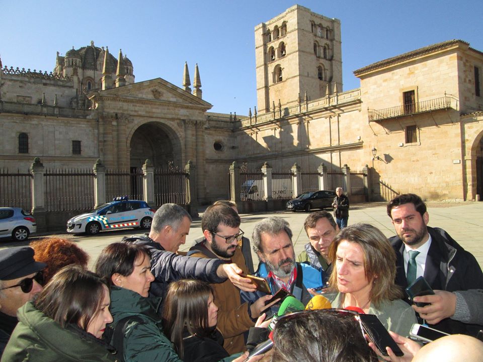 “Zamora es especialmente emblemático por varios motivos. Es una provincia tan rica en tantas cosas, en capital natural, en capital arquitectónico, histórico, artístico, en capital de producción agraria, de productos de gran valor, vinos, chacinas, legumbres. Una provincia llena de historia con muchos atractivos con algunos centros logísticos y neurálgicos que conectan la España del Norte con la España del Sur, la España central con nuestro vecino Portugal y, sin embargo, los datos objetivos de envejecimiento, de pérdida de índice de natalidad, de abandono y emigración de jóvenes hombres y mujeres, la ubican a la cabeza de una España que hoy entiende que eso no se lo puede permitir” ha subrayado la Vicepresidenta cuarta del Gobierno.