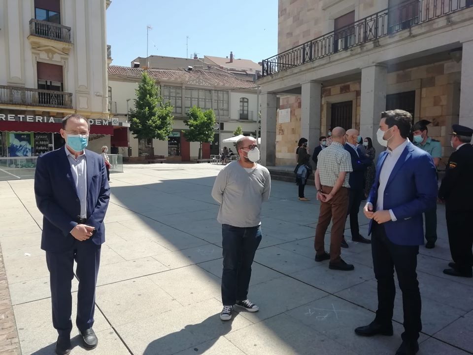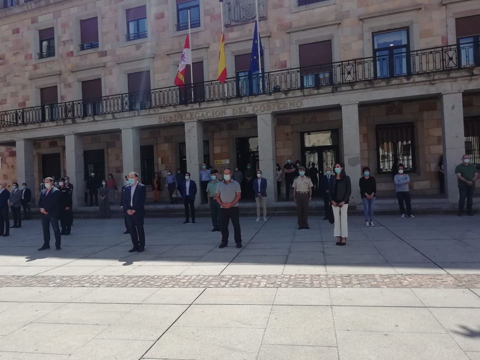 A las 12:00 h. de hoy Miércoles 27 de Mayo ha tenido lugar en la Plaza de la Constitución de Zamora un minuto de silencio por las personas fallecidos como consecuencia de la pandemia del COVID-19.