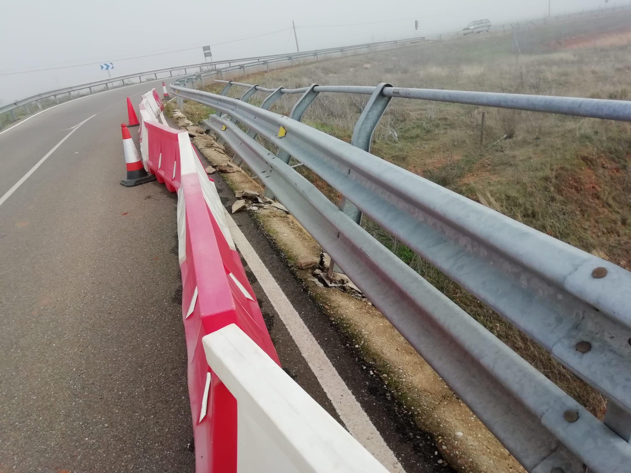Laura Gago, Helena Mateos y Eduardo Folgado han visitado el punto kilométrico 8 de la carretera de la Diputación Provincial ZA-P1405 donde pudieron constatar que desde el mes de Junio no se ha tomado ninguna medida para la reparación del viaducto tras el accidente mortal más allá de la instalación de un semáforo de prioridad de circulación en ambos sentidos y el vallado de la zona con una protección mínima de conos y barreras “new jerseys” de material plástico.