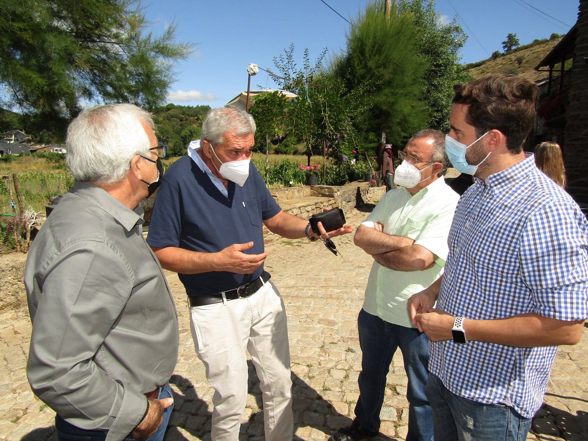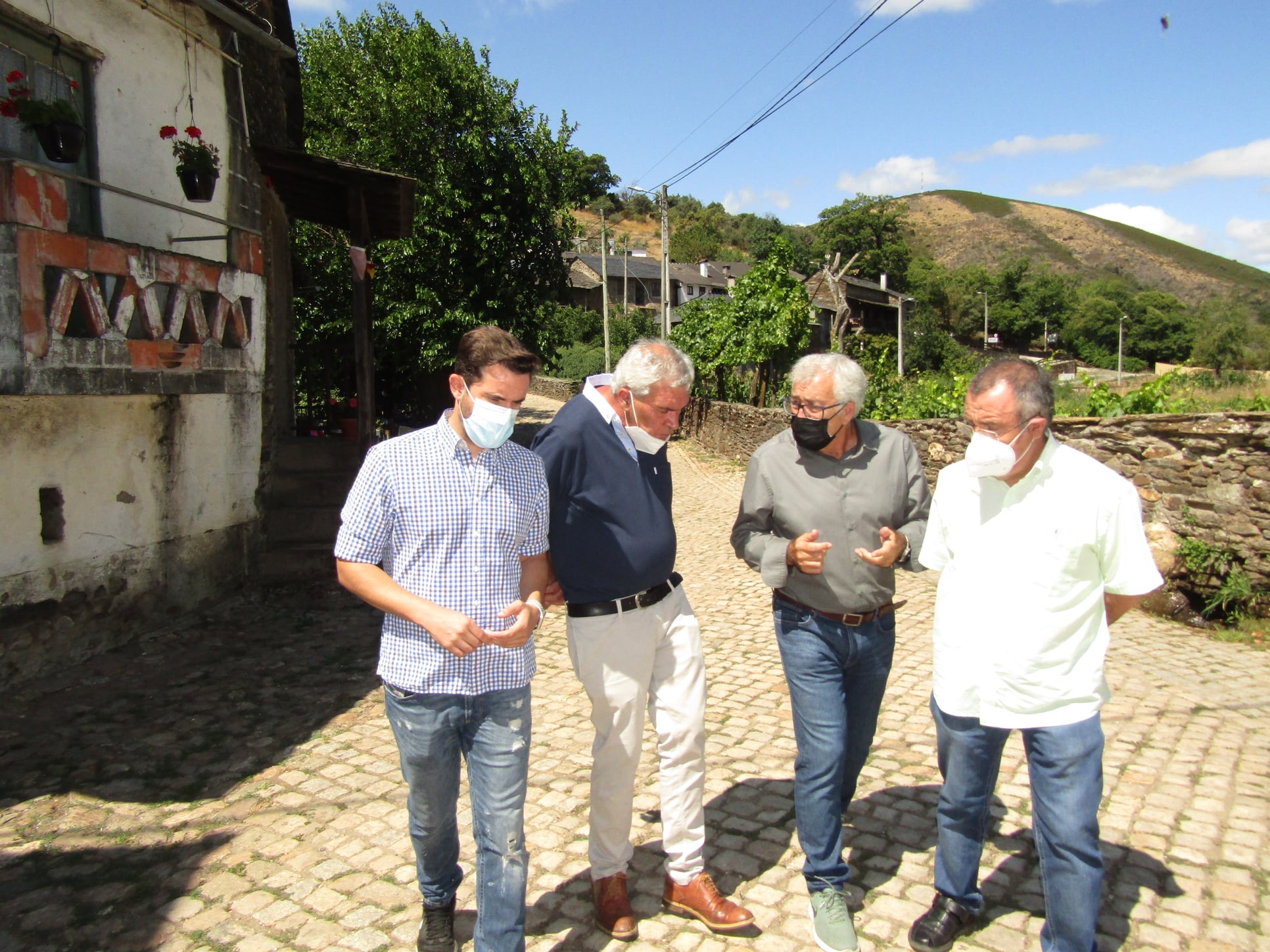 Antidio Fagúndez, José Fernández, el Presidente de Freguesía de Rio de Onor en Portugal, Mario Gomes y José Ignacio Martín Benito, han comparecido hoy Sábado 7 de Agosto en la localidad portuguesa para reclamar a la Junta de Castilla y León la adecuación del tramo español de la carretera entre Puebla de Sanabria y Bragança