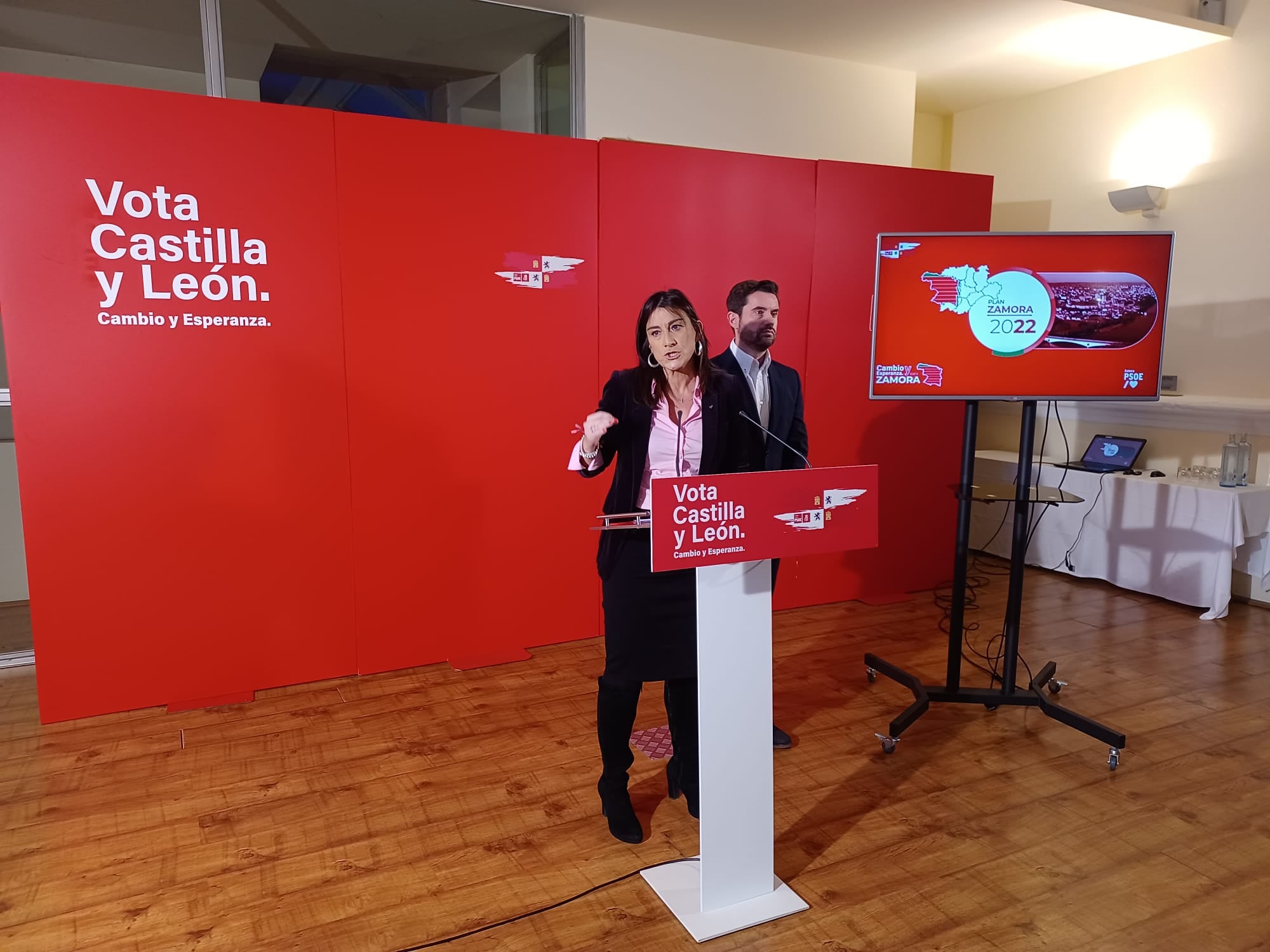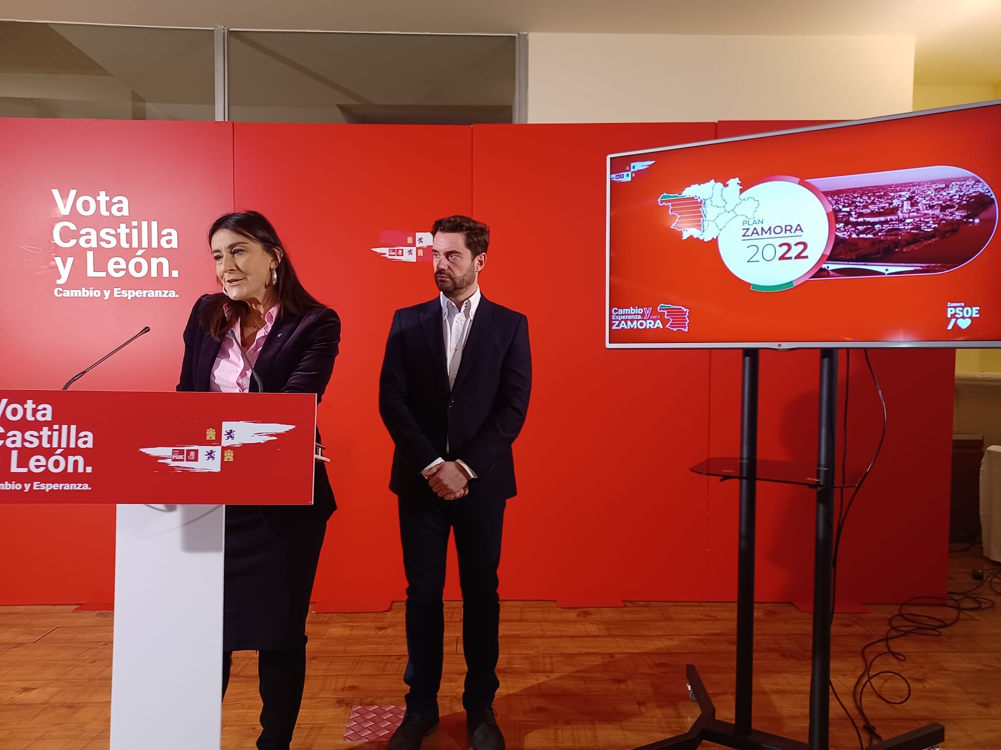 En su comparecencia ante los medios, la responsable de Organización del PSOECyL y cabeza de lista a las Cortes por Zamora, presentó el Plan Zamora 2022 junto al secretario general del PSOE de Zamora, Antidio Fagúndez.